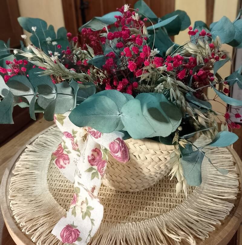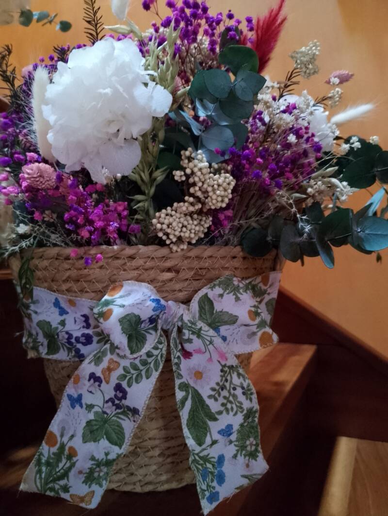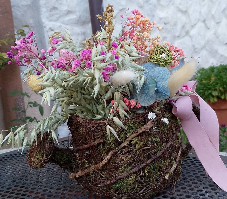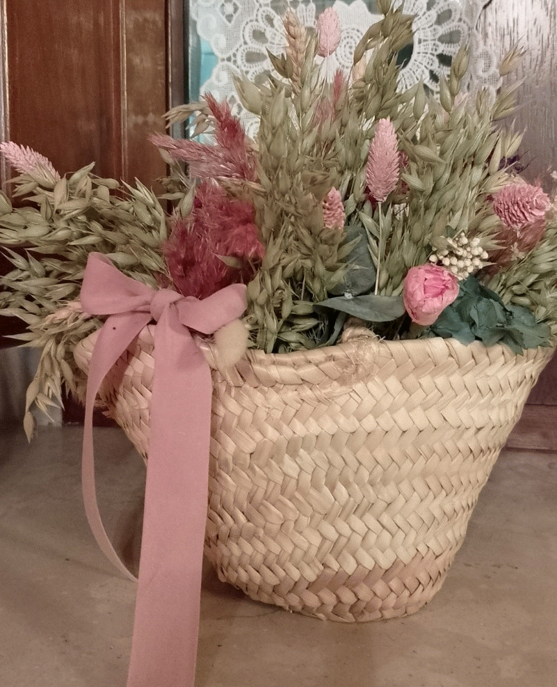 Cesta 🧺 con hortensia seca y pampas ,con un toque de avena,y pinceladas de flores campestres